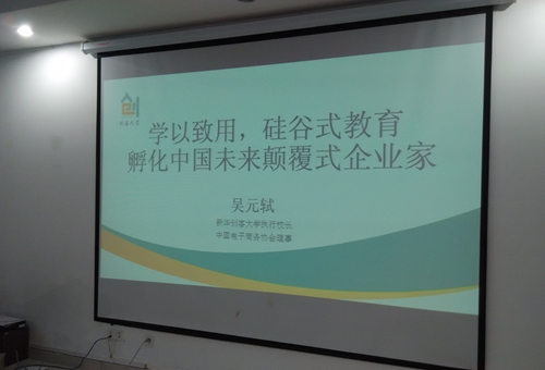 此次交流首先由新华网创客大学的袁老师作了主题为“学以致用,硅谷式教育孵化中国未来颠覆式企业家”的报告。然后由于坚副总裁对创客大学和创客夏令营项目做了简要的介绍。与会的老师对此项目都很感兴趣,积极询问和纷纷发表自己的看法
