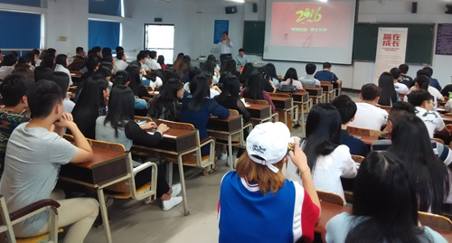 厦门南洋学院经济管理学院&联发集团于2016年10月12日下午在B301多媒体教室召开校企合作精英订单班“校企生”见面会。经管学院执行院长王晨、联发集团培训部陈经理和160名14级毕业班的学生参加了此次会议。经过校企双方对项目的详尽介绍,会议现场有就有75名同学涌跃报名,取得圆满成功!