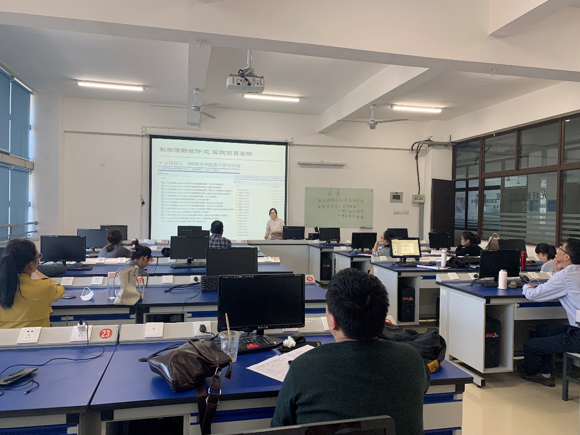 2021年4月21日下午12:00-14:30, 信息工程学院第七届中青年教师教学技能竞赛在科研实验大楼四楼J407举行。学院领导高度重视本次比赛,提前两周制定了比赛实施方案,对比赛进行了详细部署。本院设有五个教研室,分别是计算机网络技术教研室、大数据技术与应用教研室、软件技术教研室、物联网应用技术教研室、计算机应用基础教研室。从五个教研室中推举2位老师参加学院的比赛,其中物联网应用技术教研室陈姿言老师说课课程是《网络综合布线工程》、计算机网络技术教研室谢文娜老师说课课程是《服务器技术》。
