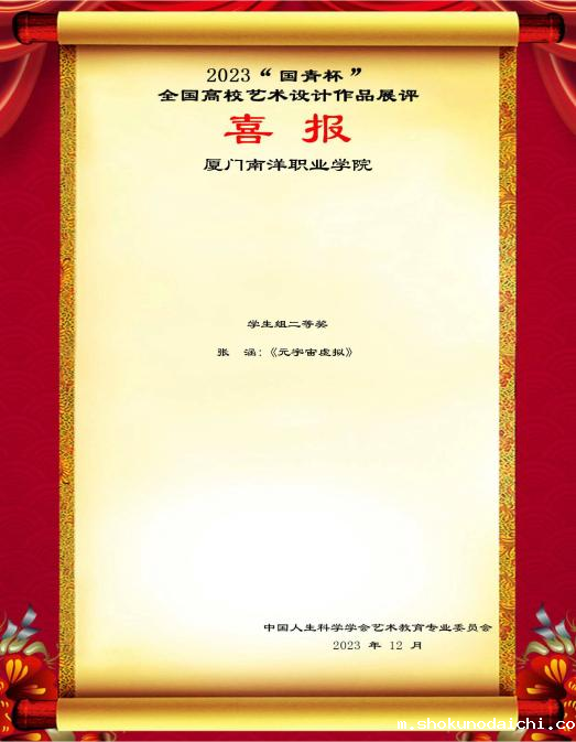 近日,由中国人生科学学会艺术教育专业委员会举办的2023第七届“国青杯”全国高校艺术设计作品展评获奖名单揭晓,我校人文社科学院王佳燕老师指导的作品获学生组二等奖1个、二等奖3个。
